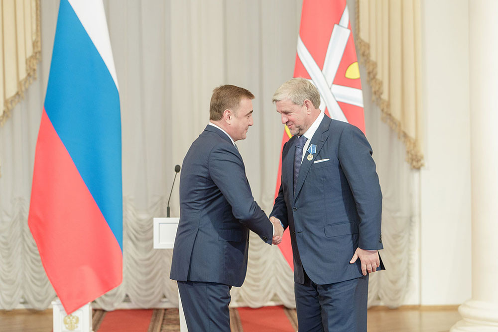 Сергей Дарькин участвовал в улучшении материальной базы и инфраструктуры футбольной академии «Арсенал». И за это Алексей Дюмин вручил президенту ТИГРа медаль «Меценат Тульской области».