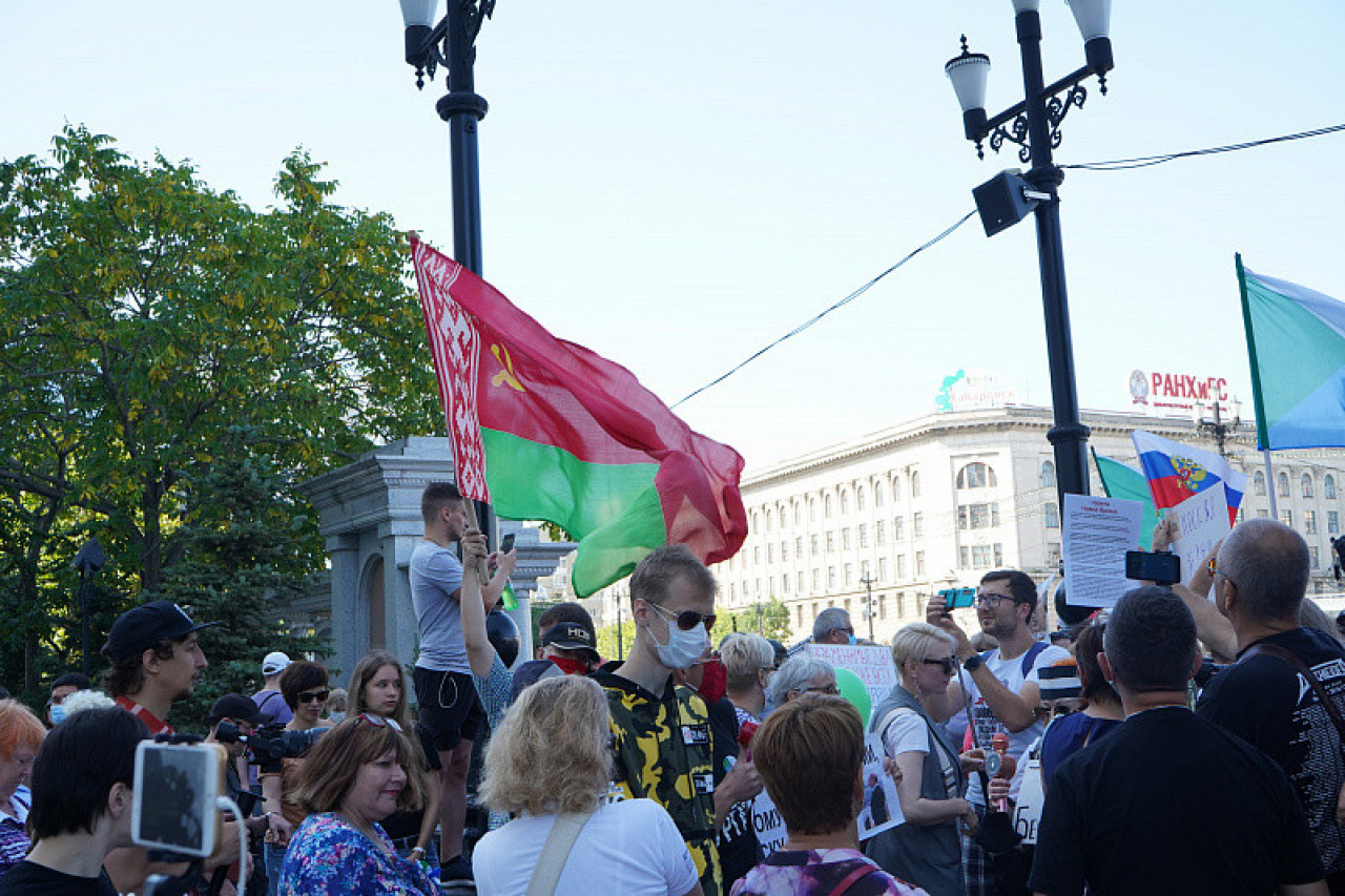 Следует отметить и некоторое размывание лозунгов протестующих. Если полтора месяца назад единственными из них были проведение суда присяжных в Хабаровске над бывшим главой региона Сергеем Фургалом, подозреваемым в организации убийств, то сейчас в шествии можно увидеть и белорусские флаги в поддержку Лукашенко, и бело-красные в поддержку белорусской оппозиции, а также плакаты о честных выборах и пенсионной реформе. В общем, протестуют хабаровчане против всего плохого и за все хорошее.