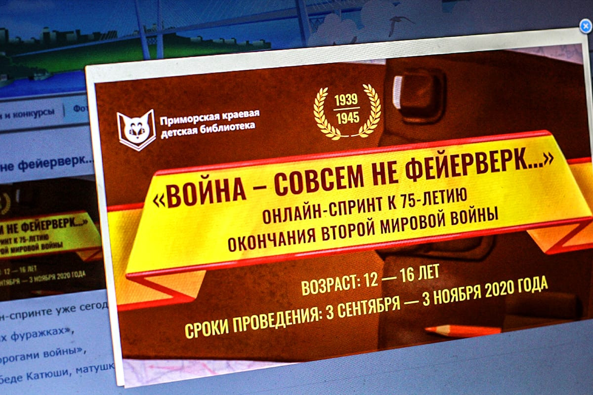 3 сентября, в день победы над Японией, на сайте Приморской краевой библиотеки дан старт онлайн-спринту «Война – совсем не фейерверк...». Открыт онлайн-спринт будет два месяца, до 3 ноября, сообщает ИА DEITA.RU.