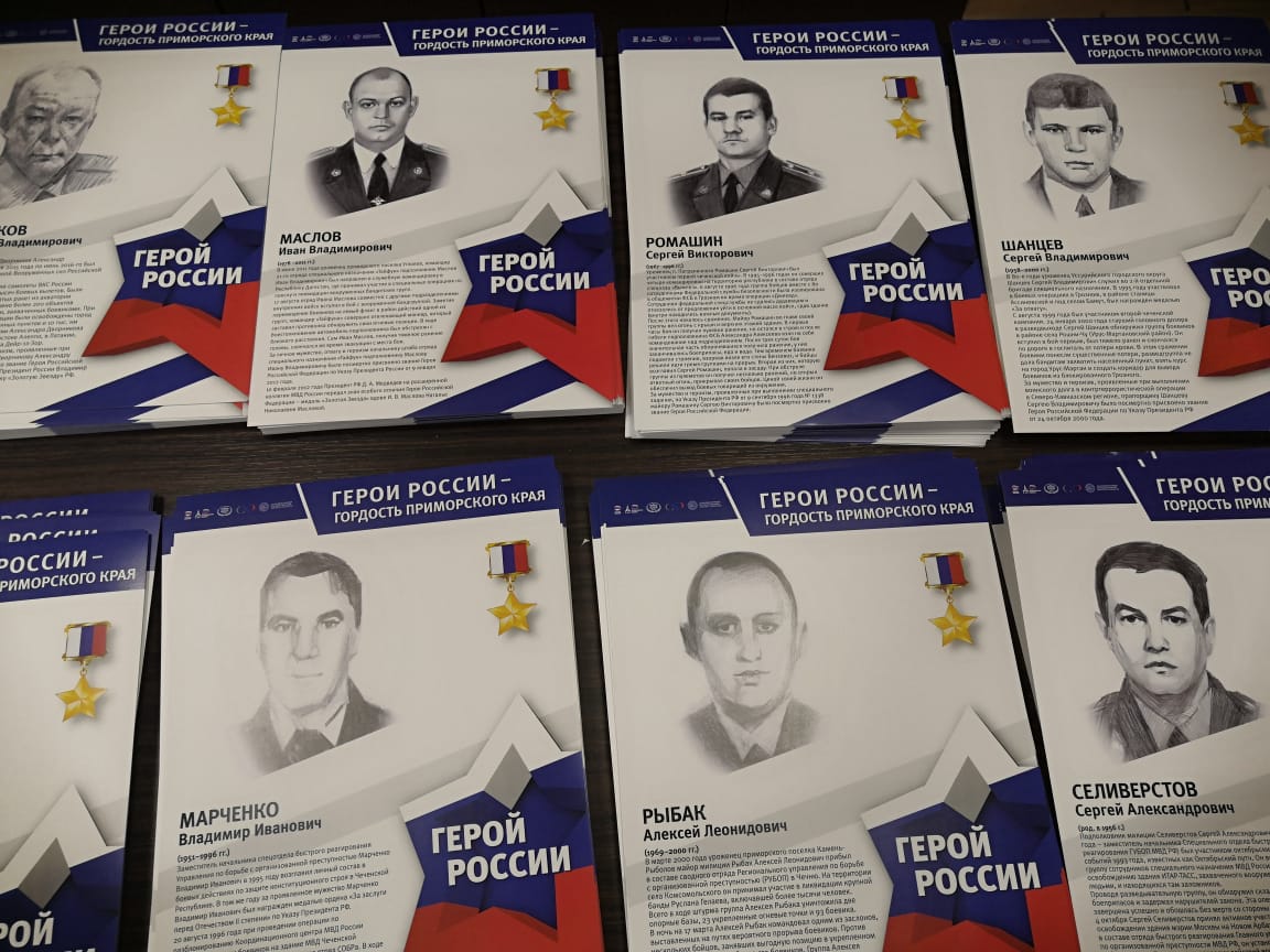 Региональное отделение партии «Единая Россия» в рамках федерального партийного проекта «Историческая память» запускает в Приморье выставки, посвященные Героям России. Первые из них открылась во Владивостоке на Спортивной набережной и в доме Правительства Приморского края в честь празднования годовщины со дня образования Приморского края.