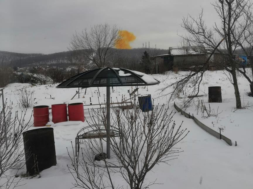 Облако заметно почти из всех точек города. Местные жители пишут, что звук взрыва был слышен даже в соседних населённых пунктах – Фокино и Петровке.