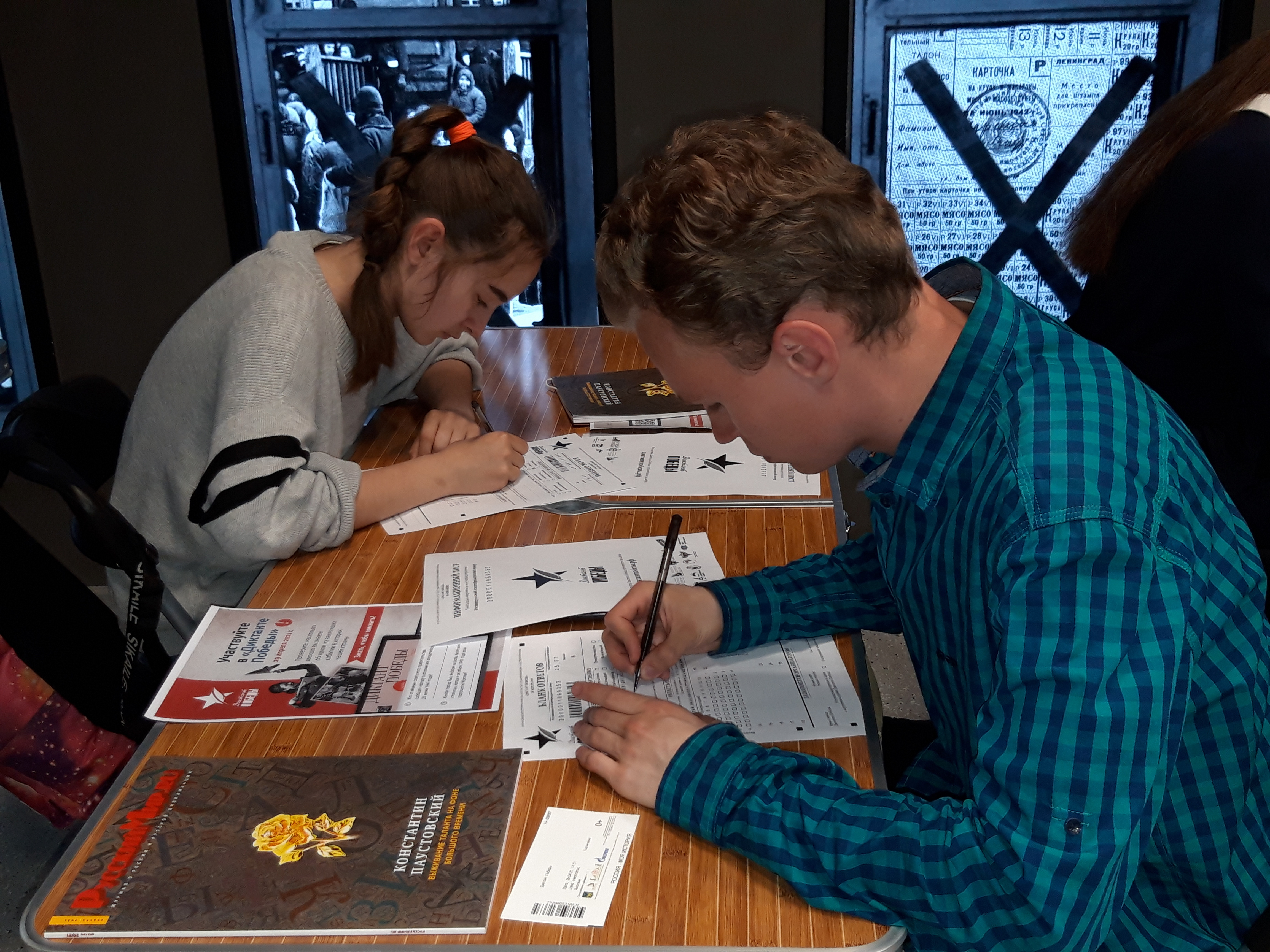 После награждения юные интеллектуалы всей командой приступили к написанию «Диктанта Победы».