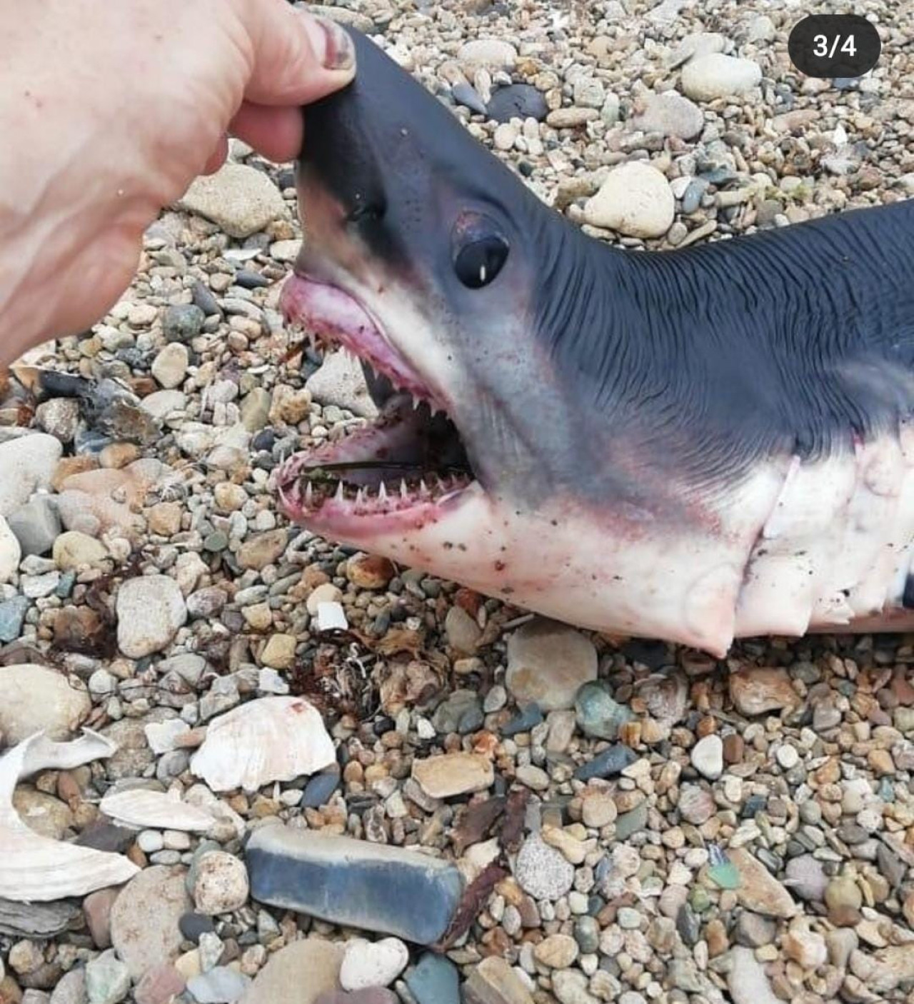 Как сообщили в паблике Улов25, «зубастое чудо» обнаружили накануне, 2 июля, «после двухдневного волнения в море и ветре». Судя по кадрам, акула небольшая, но, как пишут в Сети, «тяпнуть за пятку может».