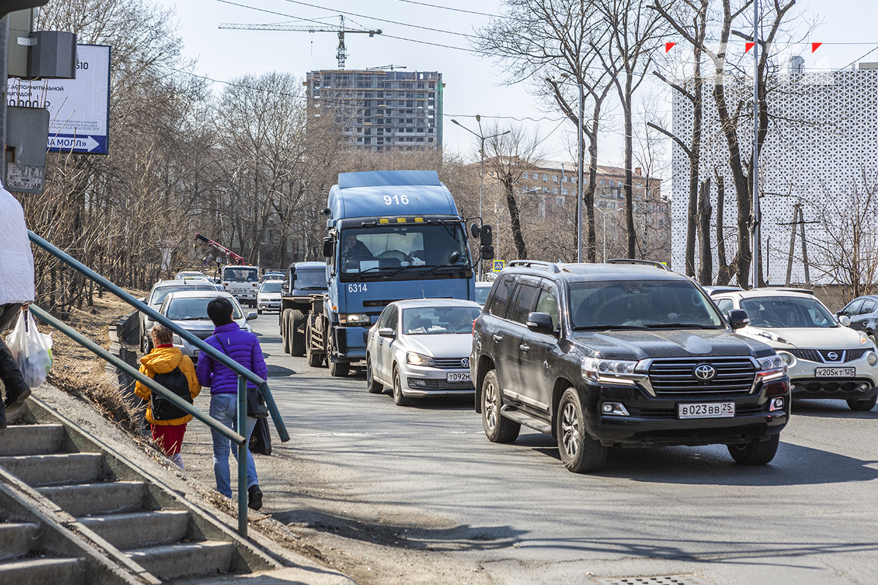 Заторы наблюдаются на кольце Первой речки, кольце Красного знамени, на перекрёстке Дальпресса, на улицах Постышева, Русской и Калинина.