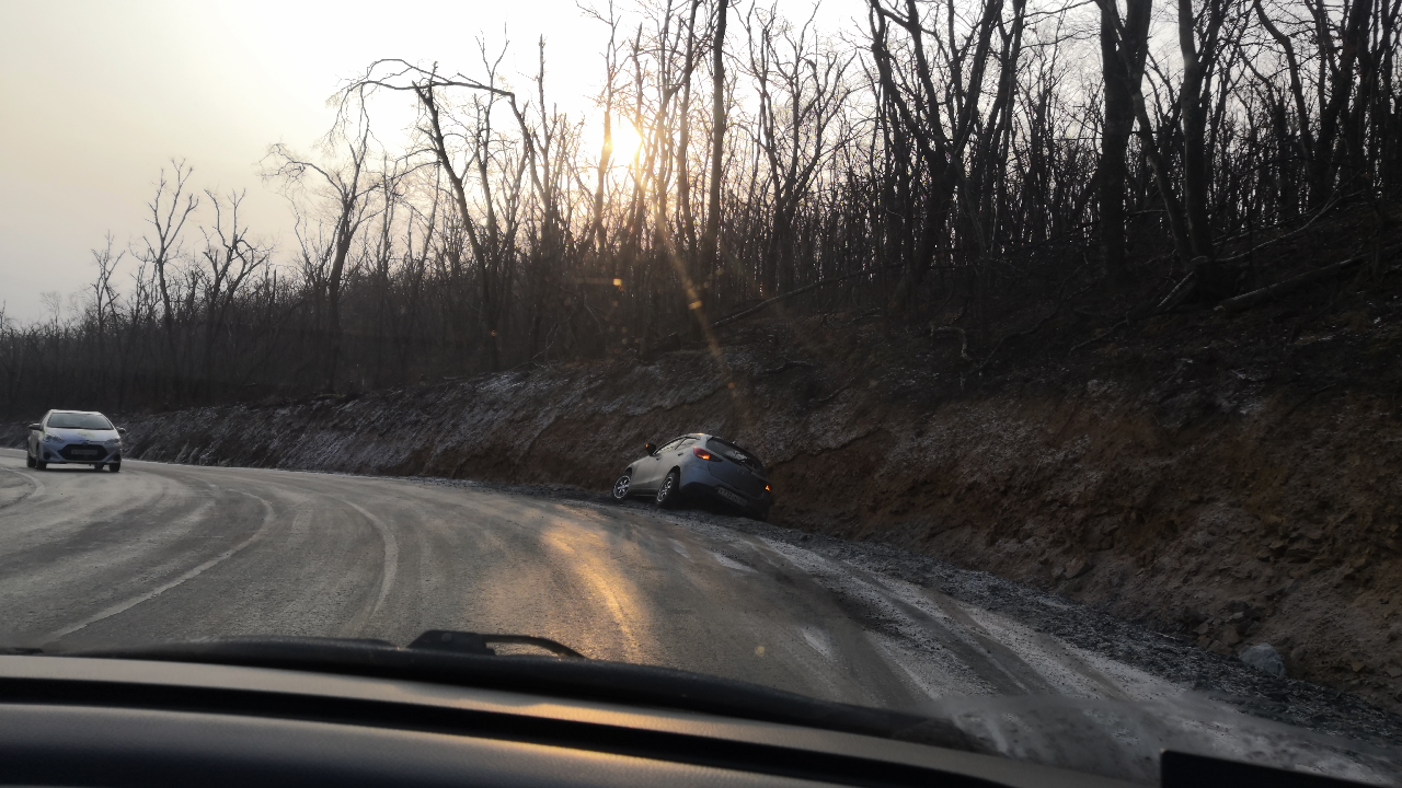 Сегодня утром в редакцию ИА DEITA.RU поступило сообщение о дорожном происшествии на участке недавно заасфальтированной дороги за Университетским проспектом на острове Русском. На очень скользкой дороге автомобиль уехал в кювет. О пострадавших не сообщается – очевидец не заметил на месте ДТП ни медиков, ни полиции. Дорога обледенела из-за перепада температур с плюсовой до отрицательной. Такой же эффект ожидается завтра утром (помимо того, что в крае ожидается снегопад, снег с дождём и метель).