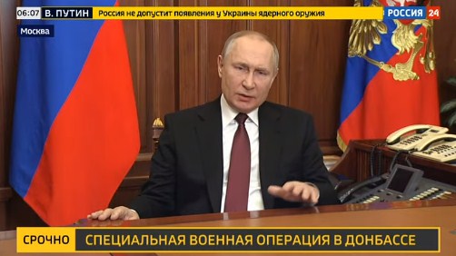 Обстоятельства требуют от нас решительных и незамедлительных действий. Народные республики Донбасса обратились к России с просьбой о помощи. В связи с этим, в соответствии со статьей 51, часть 7 Устава ООН, с санкции Совета Федерации и во исполнение ратифицированных Федеральным Собранием договоров о дружбе и взаимопомощи с ДНР и ЛНР, мной принято решение о проведении специальной военной операции", - сказал Путин в телеобращении к россиянам.