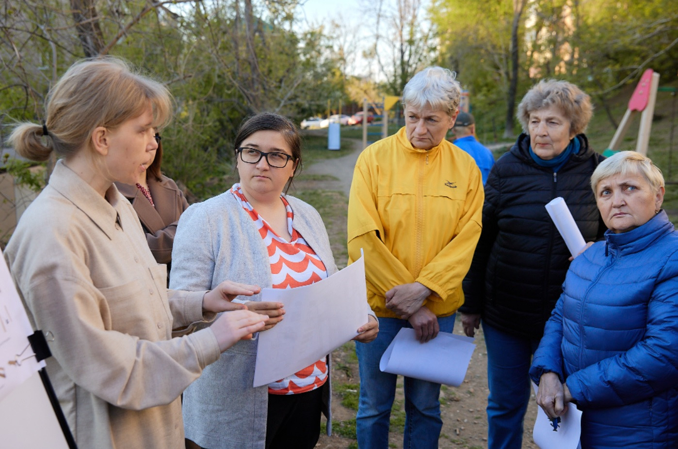 Местные жители с интересом ознакомились с проектом и попросили доработать его в некоторых вопросах. Например, прозвучало предложение создать элементы ограждений, чтобы машины не смогли проезжать по обновленной территории, и установить декоративный забор вокруг детской площадки.