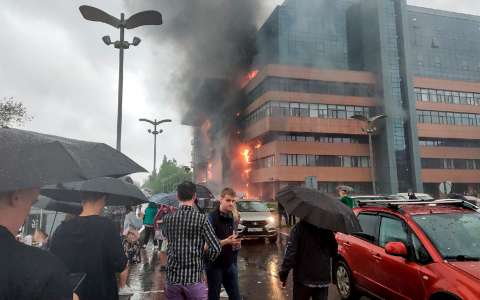Информации о погибших пока нет, предварительно пострадали два человека. Предварительная причина пожара в БЦ – короткое замыкание из-за неправильного монтажа фасадного освещения над одним из входов в здание.