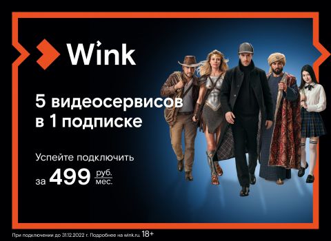 Wink (цифровой видеосервис «Ростелекома») проводит акцию «5-в-1» — это отличная возможность оформить единую подписку на пять топовых онлайн-кинотеатров по цене в два раза ниже, чем общая стоимость подключения каждого из них по отдельности. Принять участие в акции «5-в-1» и сохранить выгодный тариф на будущее можно только до 31 декабря 2022 года. А еще все новые подписчики до 31 октября могут протестировать преимущества предложения — две недели доступны бесплатно.