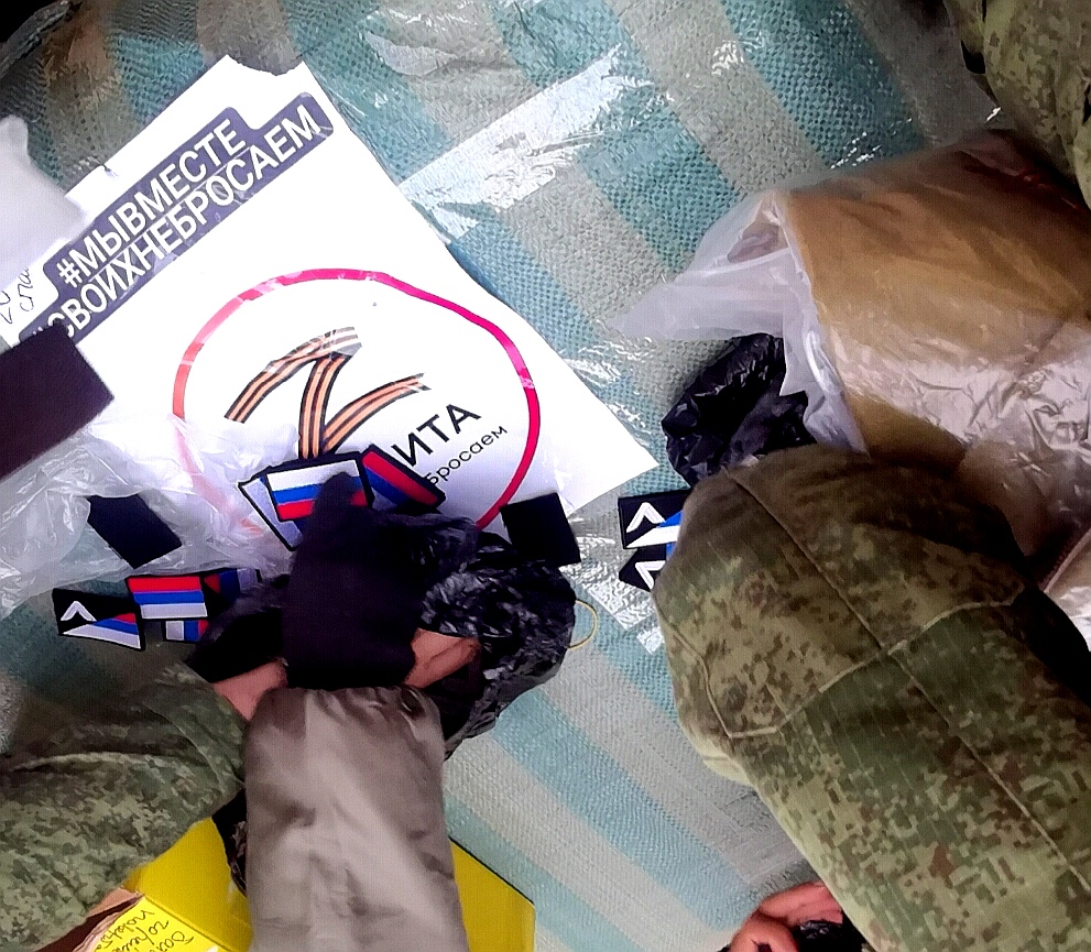 Полигон – не гостиница, и ребята рады всему - банке тушенки, сладостям, упаковке батареек, фляжке. Тепло отнеслись к коробке с значками триколора и флагами.