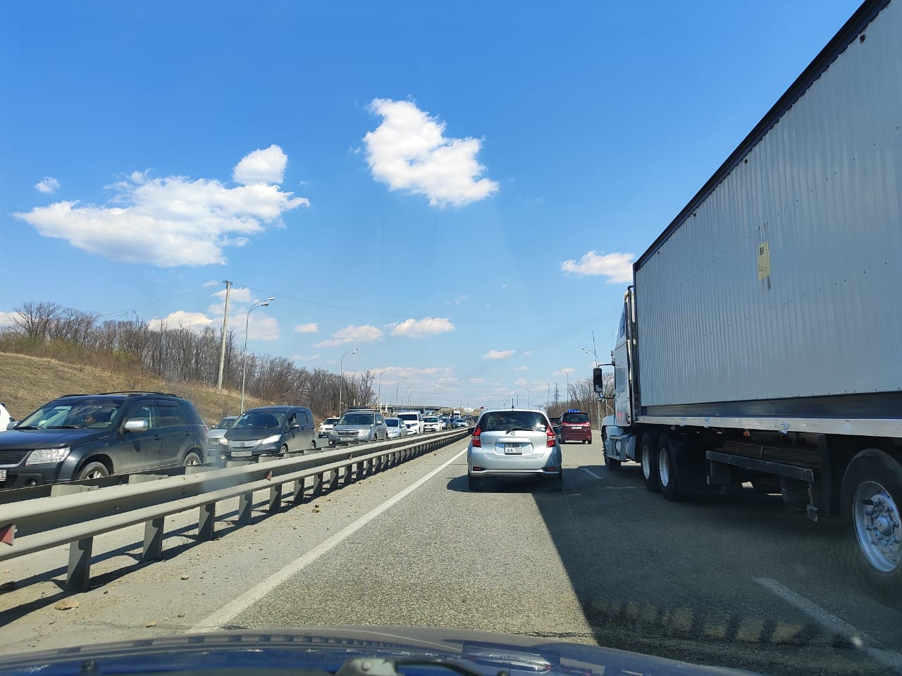 Затор наблюдается не только по трассе Де-Фриз – Седанка – Патрокл, но и на объездной дороге через село Прохладное. Сейчас, пожалуй, целесообразнее въезжать в Надеждинский район через посёлок Трудовое и Артём, там пока заторов нет.