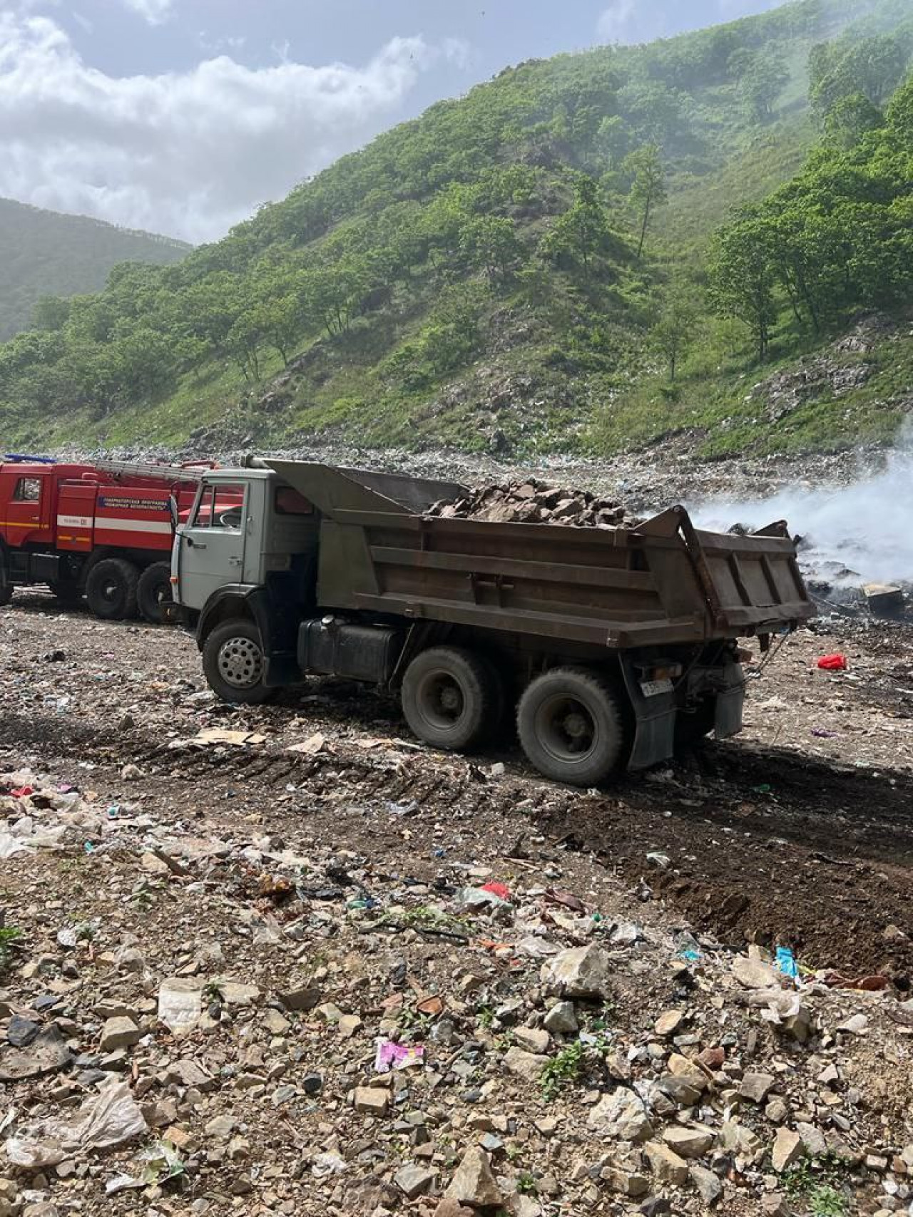 Кроме городских свалок во Владивостоке и Дальнегорске, отметился пожаром в этом году и мусорный полигон в Находке, тушили его три недели.