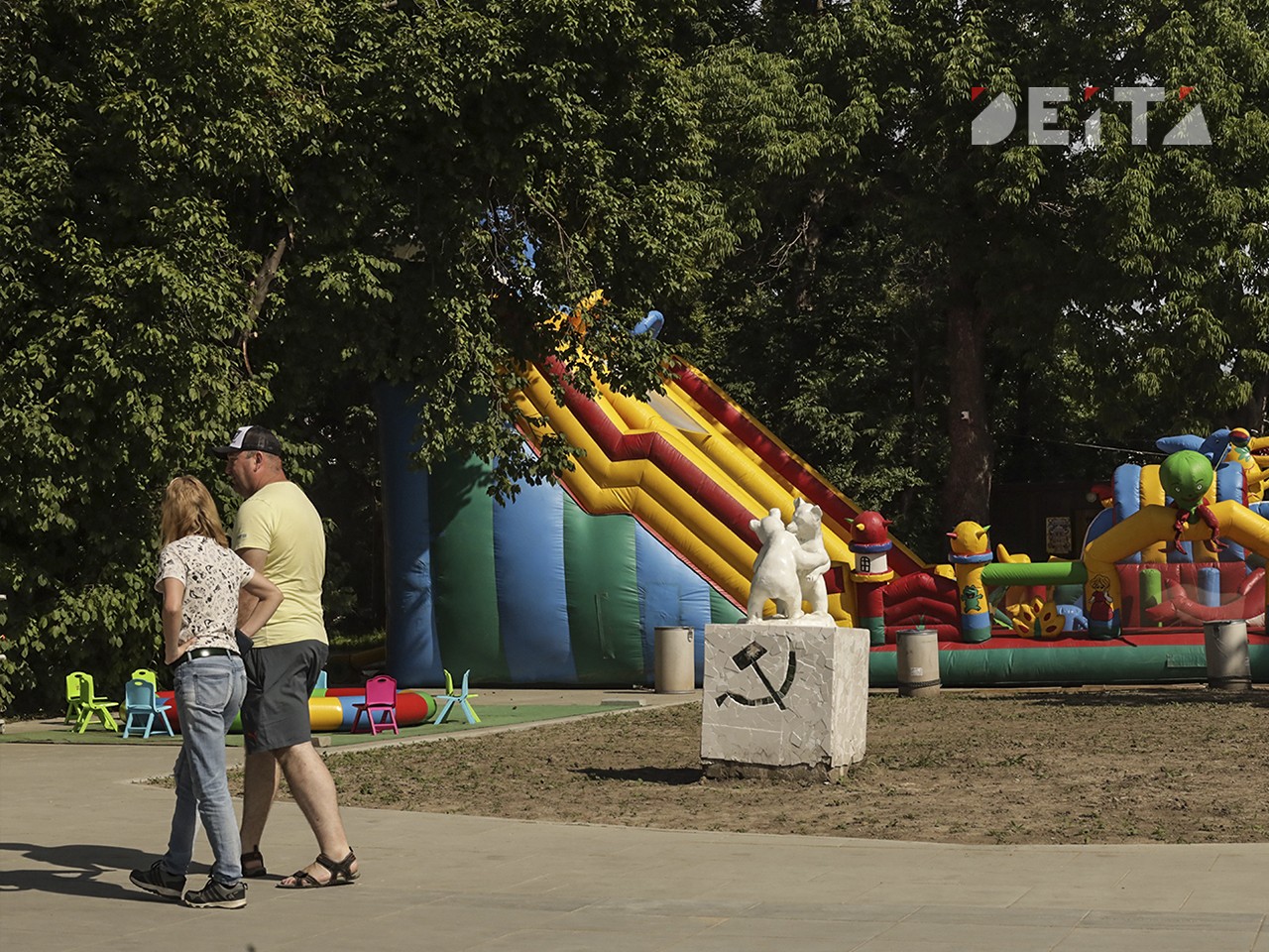 Для деток в парке установлено два ярких надувных игровых комплекса, по цене 250 р. за 15 мин. пребывания на территории одного из них и 200 р. за 20 мин. на другом. Разные хозяева, разные цены. Прайса нигде не нашла, цена со слов сотрудников. За два приезда в парк детей не то что стоящих в очереди на эти горки, ни одного ребёнка, здесь играющего, не видела.