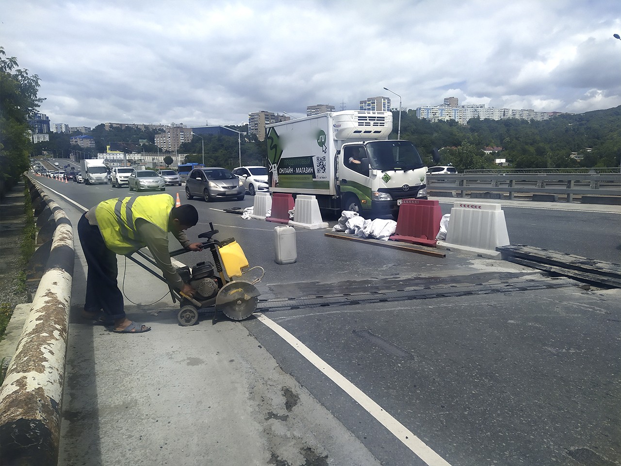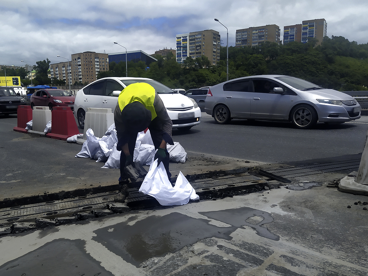 «Уже больше половины сделали, подрядчик опережает сроки примерно на месяц. Стараемся работать максимально с опережением, чтобы освободить проезжую часть. У нас срок сдачи работ стоял 31 августа, думаю, что уже к концу июля мы справимся с этой задачей», – отмечает Дмитрий Долгий, и добавляет, что на стороне, ведущей к центру Владивостока, работы вышли на финишную прямую и будут продолжаться ещё максимум 3 дня, далее подрядчик приступит к ремонту деформационных швов на другой стороне путепровода.