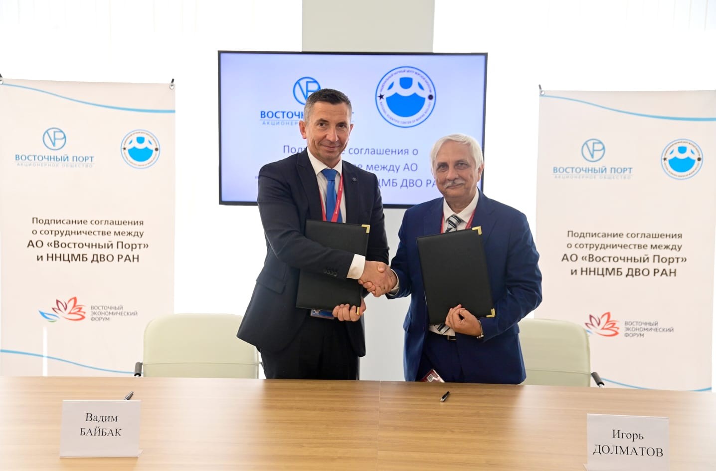 Компания АО «Восточный Порт» продолжит оказывать финансовую и организационную поддержку проектам приморских учёных, направленным на изучение и сохранение среды обитания прибрежной флоры и фауны в заливе Петра Великого Японского моря. Соответствующее соглашение на полях VIII Восточного экономического форума сегодня подписали управляющий директор АО «Восточный Порт» Вадим Байбак и директор ННЦМБ ДВО РАН Игорь Долматов.