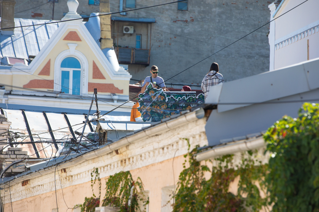 «Персонажами росписи стали жена штабс-капитана фон Бреннера, проглотившая при обыске последнюю карту островов с обозначенным местом клада, отставной фельдшер Бакушев, поставивший на местной сцене «Гамлета» и драматично забывший монолог главного героя. В других сюжетах – участники знаменитого неформального общества «Ланцепупов», а также призрак Белой дамы. Работа будет завершена в течение нескольких ближайших дней. Панно можно увидеть с пешеходной части Адмирала Фокина, из окон домов напротив и с некоторых обзорных точек на Миллионке», – информируют в мэрии.