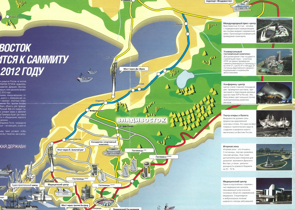 Мастер-план Владивостока напомнил о грандиозных проектах периода подготовки к Саммиту АТЭС-2012. Пока у него такой же статус красивой презентации. Редакция ИА DEITA.RU вспоминает планы Дарькина-Николаева по преображению Владивостока в город будущего. Проектам уже более десяти лет, и даже спустя время мечты прежних властей выглядят крайне амбициозно. Гигантомания с целью произвести впечатление хранится в раритетных уже брошюрах, сохраненных редакцией на долгую память.