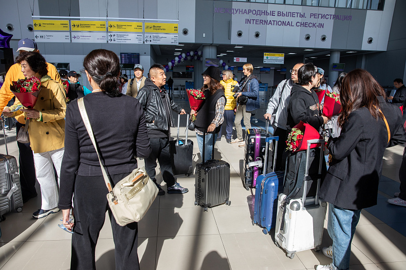 Прибытие рейса сопровождалось торжественной церемонией встречи гостей, в которой приняли участие заместитель председателя Правительства края Валерий Прокопчук, мэр Владивостока Константин Шестаков и руководитель регионального агентства по туризму Арсений Крепский.