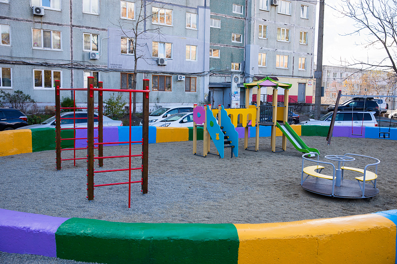 Для безопасности детского отдыха было решено обустроить во дворе новую детскую площадку. Конкурс проектов ТОС, реализуемый при поддержке губернатора Приморского края Олега Кожемяко, помог жителям дома в этом. ТОС «Крейсер» получил 1,5 миллиона рублей на реализацию своей задумки.
