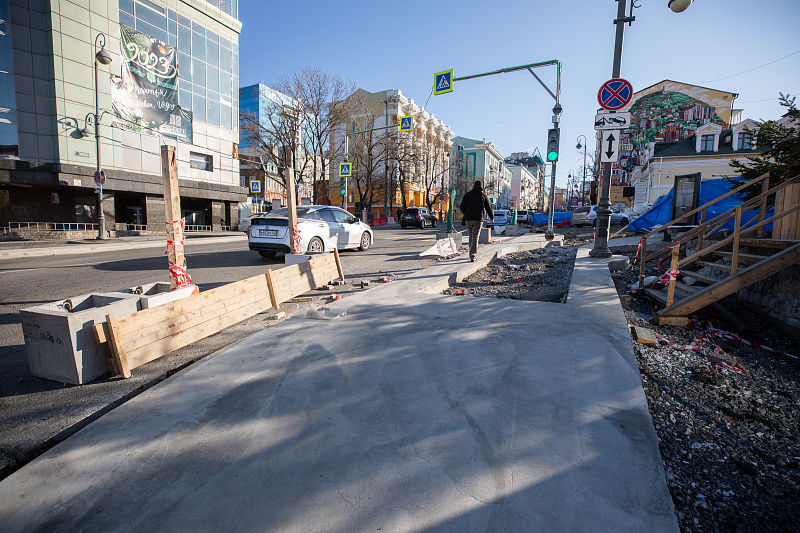 Специалисты администрации Владивостока информируют о продвижении реконструкции площади Адмирала Фокина – там кипит работа ежедневно. В рамках проекта здесь полностью преобразится территория. Представители подрядной организации отмечают, что работы по укладке сетей завершены, на территории высажены новые деревья, а бетонное покрытие практически полностью готово.