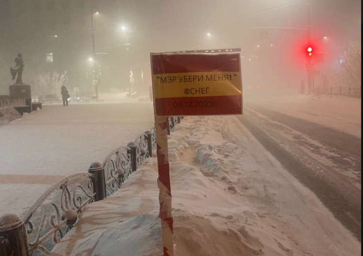 В Якутии на сугробах, которые образовались после расчистки тротуаров, появился плакат. Надпись на нем призывает мэра города выйти на улицу и убрать снежный покров. «Просьба» представлена от имени самого снега - так шутят местные жители. Глава города Евгений Григорьев на призыв пока не ответил.