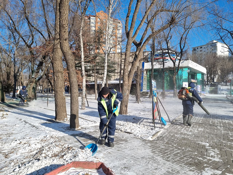 В связи с непогодой работы велись и на пешеходных зонах и в скверах Владивостока – там работники предприятия очищали тротуары от снега. Так, в минувшие выходные работы проходили на улицах Давыдова, Русской, Алеутской, Гульбиновича, Часовитина, Ильичева, Вилкова, Калинина, Кутузова, Терешковой и по ряду других адресов.