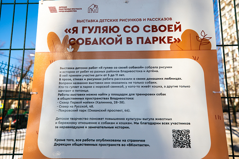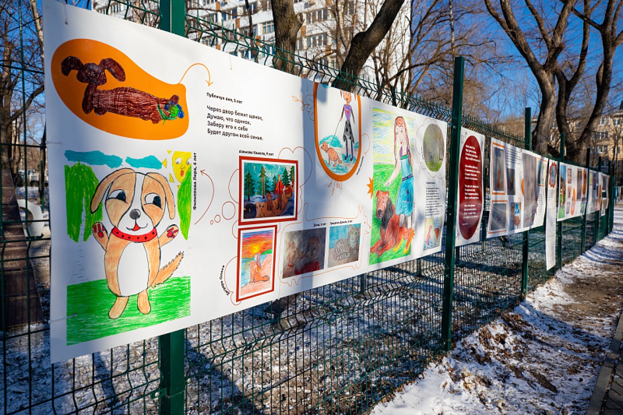 Работы детей Владивостока на тему «Я гуляю со своей собакой» представлены под открытым небом в скверах и парках города, сообщает ИА DEITA.RU. Выставка проходит в рамках проекта «Животные города_В».