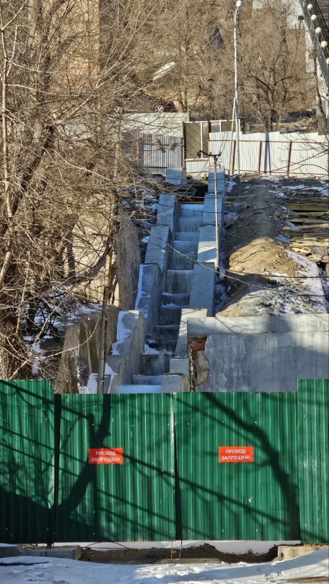 Напоминаем, за благоустройство лестницы отвечает застройщик, который возводит сейчас мини-гостиницу на соседнем земельном участке. Местные жители подозревают, что из-за стройки лестница и разрушилась окончательно: на неё выводили грунтовые воды, мешающие работе строителей.