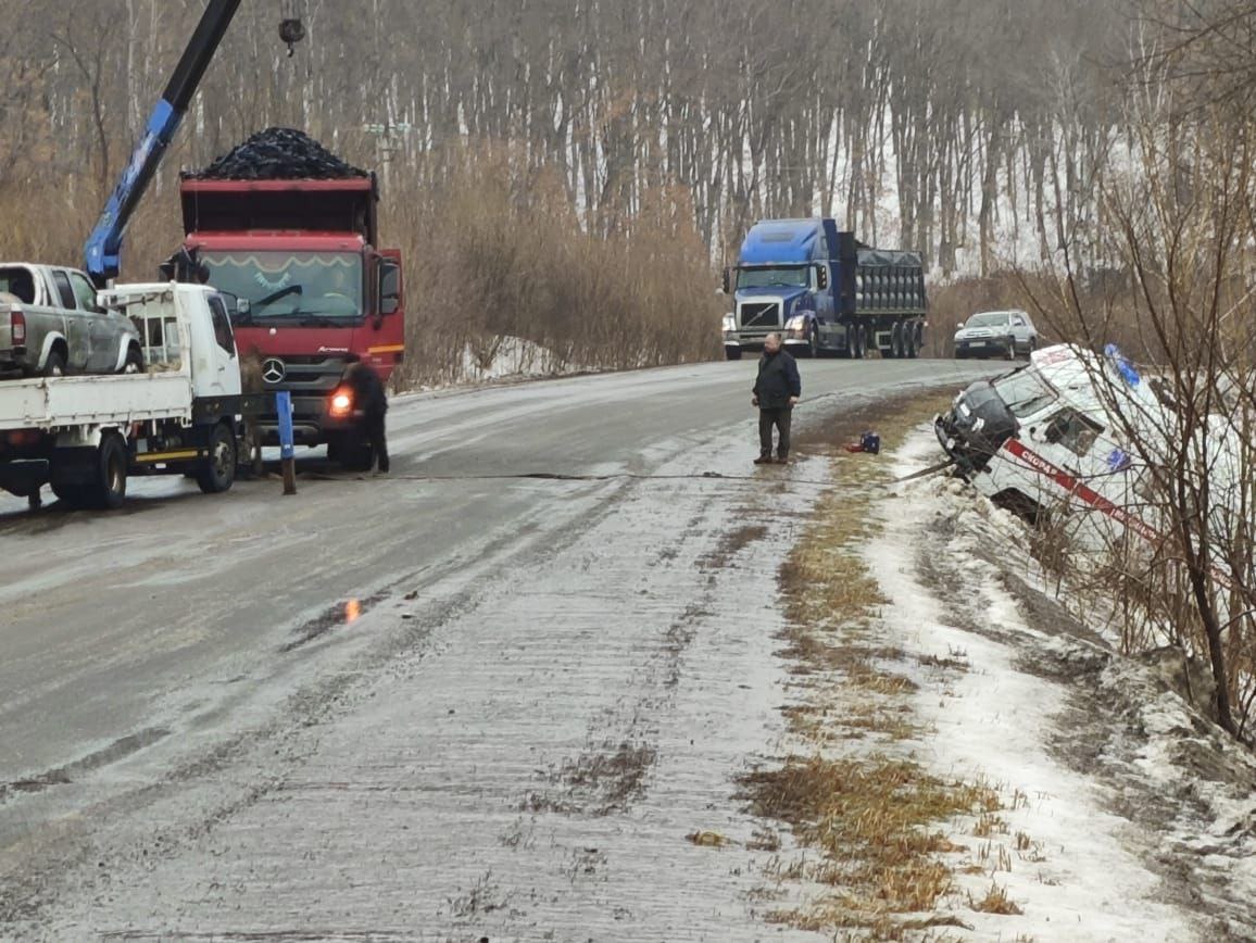 А в районе Чугуевского перевала в кювете оказался автомобиль скорой помощи. Понадобилась ли бригаде медиков помощь коллег, не уточняется.