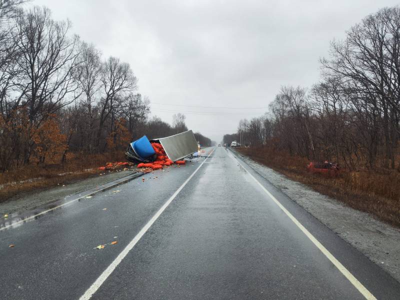 Многочисленные автоаварии сегодня на территории Находкинского, Большекаменского, Фокинского городских округов. Произошла как минимум одна смертельная автокатастрофа: на 101-м километре автодороги «Артём – Находк –-порт Восточный» столкнулись грузовик Toyota Toyo Ace и внедорожник Nissan X-Trail. 63-летний водитель внедорожника не справился с управлением, оказался на полосе встречного движения, произошло лобовое столкновение. Погиб виновник аварии и его 53-летняя пассажирка. На месте автокатастрофы работают полицейские и следователи.