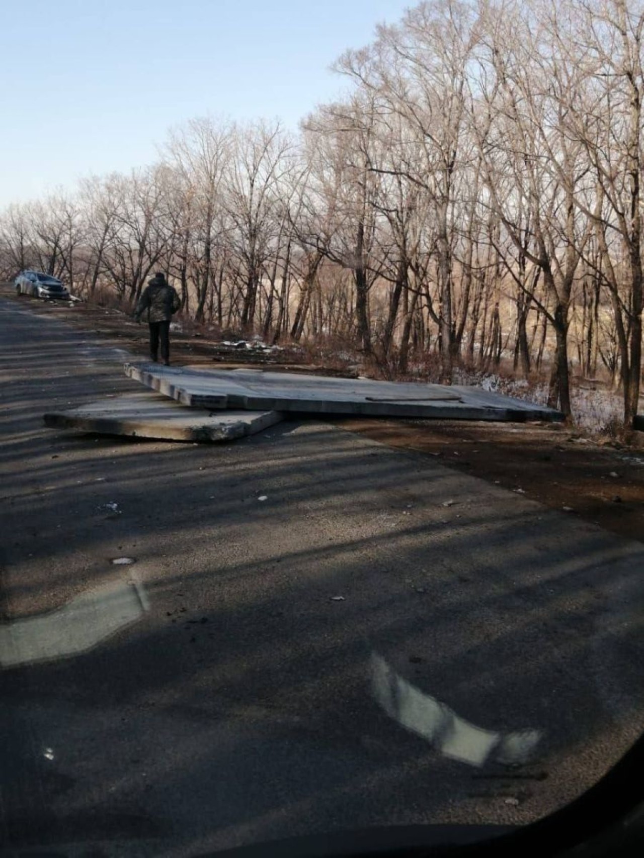 Грузовик Scania, груженый железобетонными плитами, ехал в сторону посёлка Тигровый. При движении транспортного средства груз свалился с платформы на проезжую часть, спровоцировав массовую автоаварию на полосе встречного движения. Повреждения получили автомобили Niva, Toyota Allion, Honda Shattle, одна из машин оказалась за пределами проезжей части и опрокинулась, туда же в кювет улетела одна из плит.