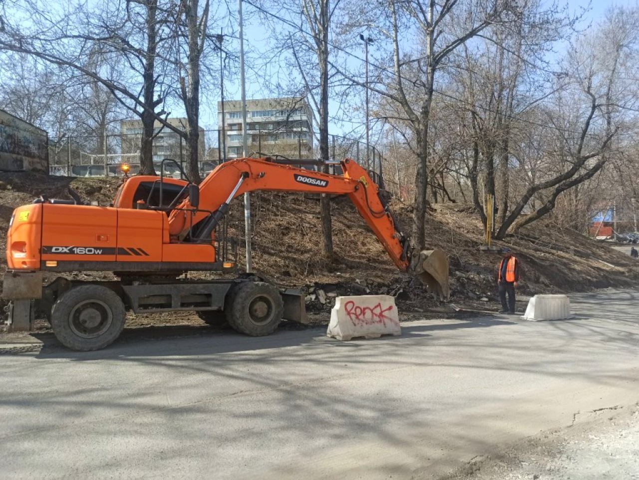 Сейчас комплексный дорожный ремонт охватил ряд улиц: рабочие трудятся на Героев Хасана, Никифорова, в районе перекрестка Адмирала Юмашева – Адмирала Кузнецова – Нейбута. В мэрии информируют, что работы выполняет подрядная организация «ИнвестСтройТорг». Представитель подрядчика отмечает, что уже готово 140 метров ливневой канализации на улице Героев Хасана. Также на этом участке приступили к монтажу дорожных и тротуарных бордюров. Далее бригада отправится на верхний участок и на улицу Сафонова.
