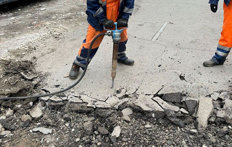 Сначала рабочие занимаются снятием пришедшего в негодность асфальта, затем будет проведена подготовка к укладке нового асфальта и собственно, само асфальтирование.