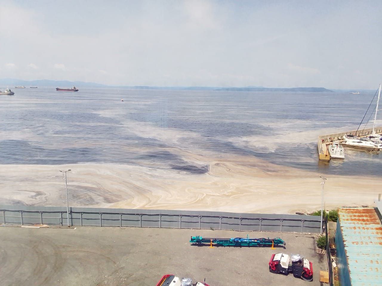 Акватория Амурского залива покрыта странными маслянистыми пятнами. Природа их происхождения вызывает вопросы – если было бы что-то нефтегорючесмазочное, то вони было бы на весь Эгершельд и центр города. Которой гости праздничных мероприятий в честь Дня города не чувствуют.