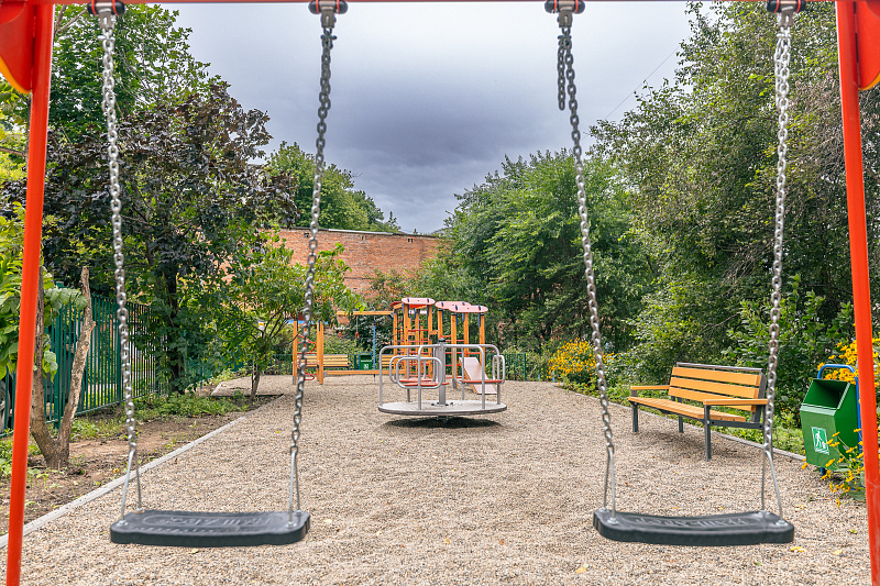 На сегодняшний день ремонт дворов во Владивостоке завершён по 48 адресам. Это в том числе и дворы на Владикавказской, 5, Карьерной, 24 и Ладыгина, 19, где теперь появились современные детские городки для детей и скамейки для их родителей.