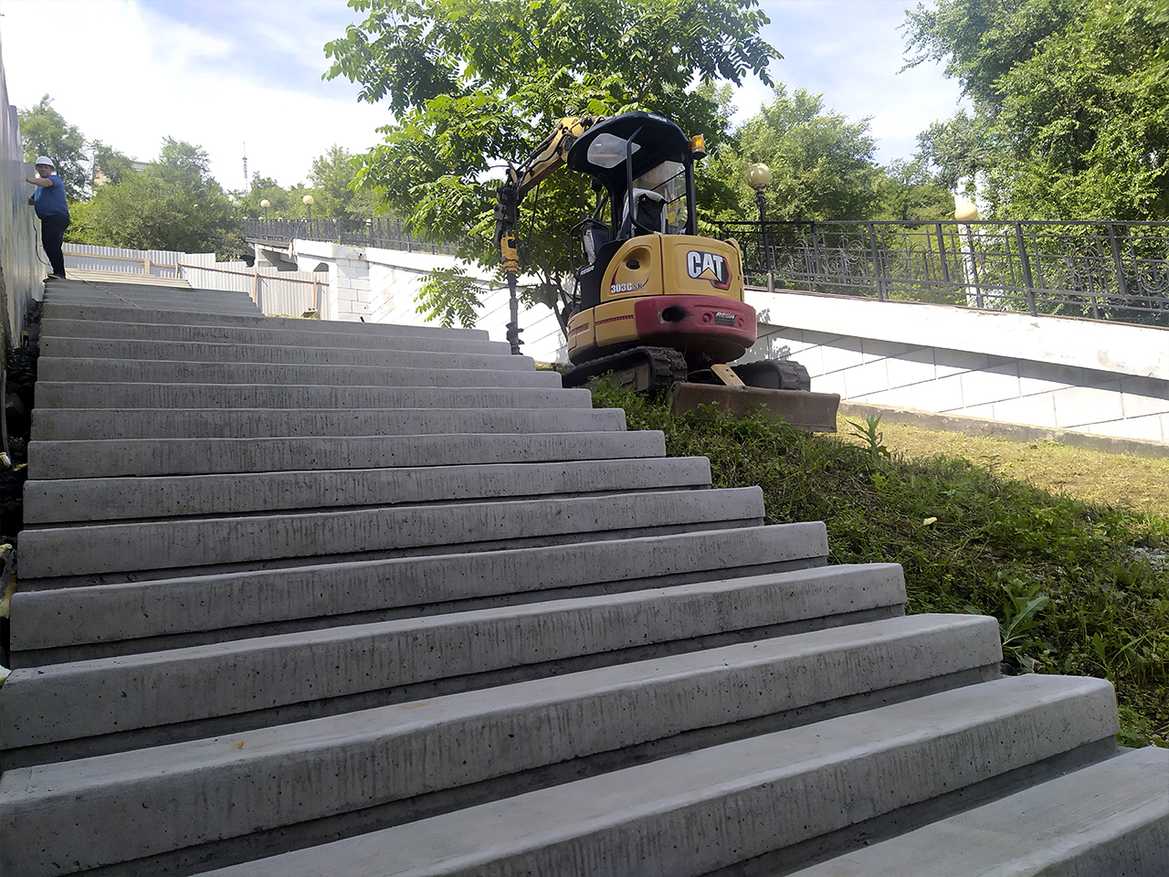 «В наши задачи входила реконструкция ливневого коллектора, который проходит под лестничным пространством. Эти работы уже завершены. Выполнены бетонные работы по самой лестнице – она полностью сформирована. Сейчас мы приступили к ограждению лестницы, озеленению территории между линией фуникулера и лестничным пространством, и прокладке линии освещения», – рассказал Евгений Устименко.