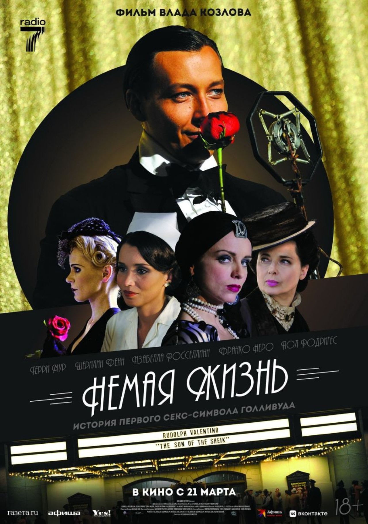 5 сентября откроется историческая драма американских кинематографистов «Немая жизнь: История женщины в черном» (18+). Голливуд — город грез и надежд, но и печали. Здесь, на кладбище Hollywood Forever, съемочная группа работает над фильмом о звездах старого Голливуда. Однажды появляется загадочная женщина в черном, которая приносит красную розу на могилу первого секс-символа Голливуда Рудольфо Валентино. Что за тайну она хранит на протяжении 70 лет и при чем здесь звезда немого кино? В ролях Владислав Козлов, Терри Мур, Шерилин Фенн, Изабелла Росселлини, Франко Неро, Монте Маркхэм, Галина Логинова, Ксения Жарова и другие.