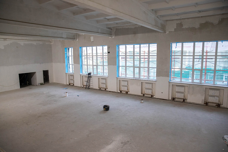 В здании по всему периметру заменены окна, установлены подоконники и радиаторы, произведён монтаж утеплителя и ветро-влагозащитной мембраны, смонтированы лотки для прокладки электрических сетей. На данный момент подрядная организация занимается подключением здания к электричеству, производит разводку системы теплоснабжения, ремонтирует водопровод и канализацию, а также выполняет шпаклевку стен.