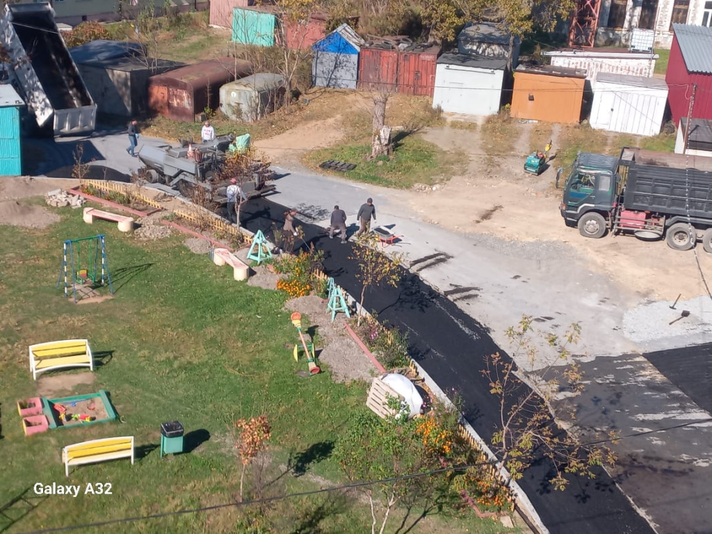 В посёлке Подножье на Русском острове завершено благоустройство придомовой территории. Финансирование на этот вид работ было получено по итогам краевого конкурса проектов территориальных общественных самоуправлений (ТОС). У дома № 34 заасфальтировали часть придомового проезда, территорию для парковки автомобилей, и дорогу, ведущую к многоквартирному дому. Работа была проведена в соответствии с графиком, и завершена в срок.