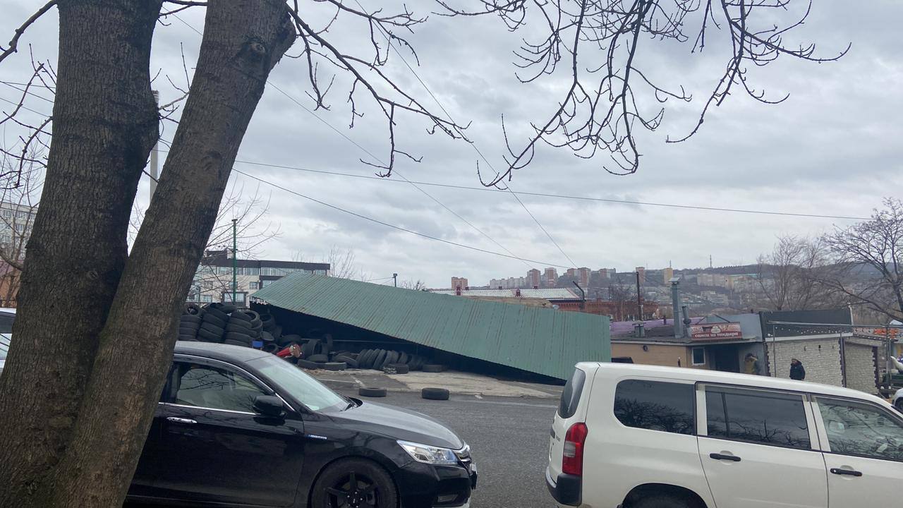 На улице Алеутской с домов № 10 – 12 ветер срывает элементы кровли. На сигналы очевидцев в социальных сетях уже отреагировали в МЦУ Владивостока, обещали незамедлительно устранить проблему. Также стихия обдирает кровлю с домов на Эгершельде, а в районе остановки «Маяк» она уронила секцию металлического забора на припаркованный рядом автомобиль. На автобусной остановке «Реалбаза» (улица Енисейская) с павильона сорвало табличку с расписанием и названием остановки.
