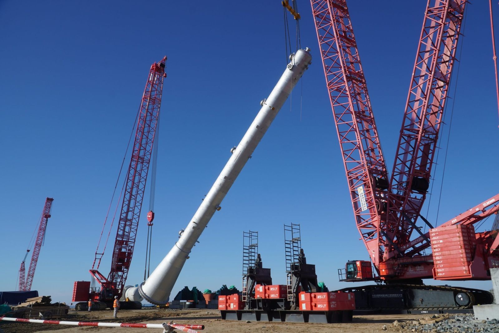«К моменту запуска двух фаз будет создано 1500 рабочих мест, в приоритете – жители Находки и Приморья. Сейчас на объекте близится к завершению инженерная подготовка территории, активно ведутся наземные работы: заливка фундаментов, формирование армокаркасов и монтаж оборудования завода. На площадке установлено восемь единиц, сегодня на фундамент возведена девятая – колонна сатурации высотой 44,9 метра и весом более 211 тонн», – рассказал генеральный директор НЗМУ Николай Сабитов.