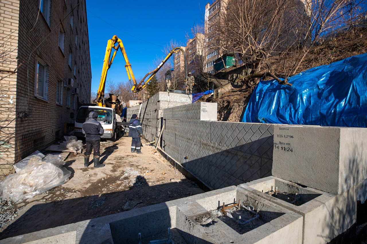 Во Владивостоке активно идет ремонт подпорной стены на улице Спиридонова, 40, сообщает ИА DEITA.RU. Работы выполняет ООО «СтройАртель» по заказу администрации города.