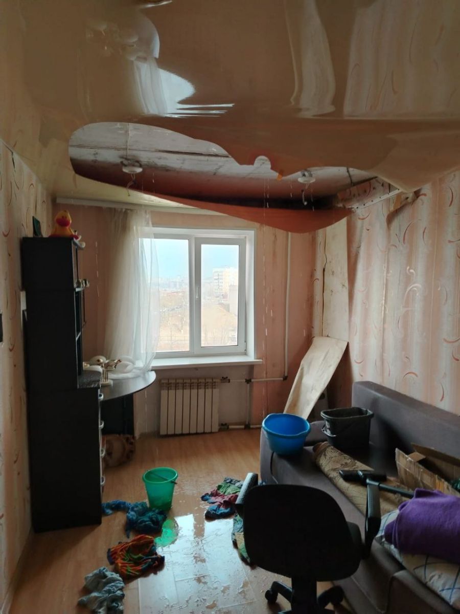 Утром 18 марта лопнула труба горячего водоснабжения на чердаке дома, квартиры пятого этажа залило, жильцам причинён материальный ущерб. Сегодня утром, 25 марта, произошёл очередной порыв, о чём жильцы пишут в социальных сетях, в том числе в telegram-чат главы города. Хозяева одной из квартир ещё не восстановили натяжные потолки, разрушенные после ЧП 18 марта, а квартиру залило кипятком опять.