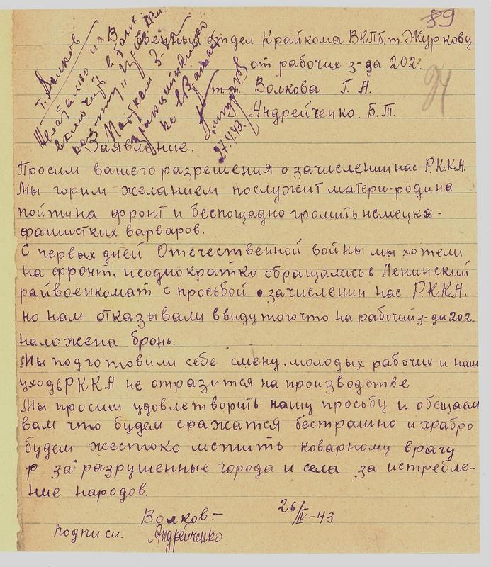 Более 300 человек изъявили желание стать танкистами. В своих заявлениях, которые сохранились в Госархиве Приморского края, они просили выбрать именно их: обещали учиться на отлично, перечисляли свои навыки и умения, объясняли, что хотели бы быть похожими на своих отцов, которые уже бьют фашистов.