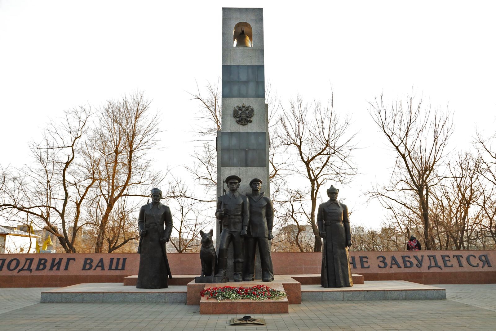 Владивосток – город пограничный, стоит он буквально в сотне километров от стыка границ сразу трех государств: России, Северной Кореи и Китая. А есть еще и морская граница с Японией. Безусловно, с пограничной службой в истории Приморья связано много славных страниц. Нелёгкую службу пограничников разных эпох увековечили в памятнике на центральной улице Владивостока - Светланской, в районе остановки общественного транспорта «Гайдамак». Памятник возведён более 27 лет назад, в 1997 году. Автором мемориала выступил скульптор Н. П. Монтач.