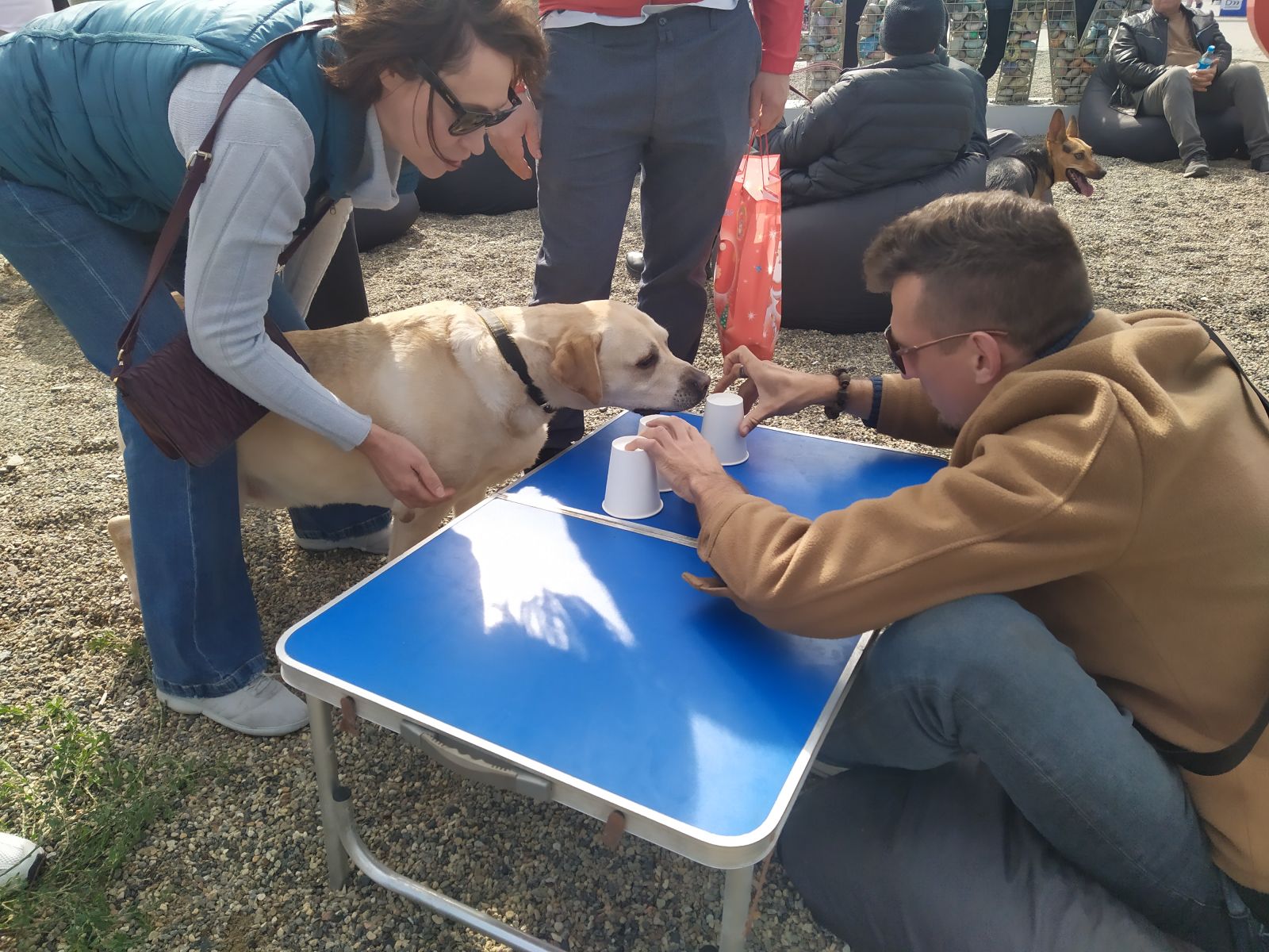 Четвероногие посетители фестиваля смогли отгадать, под каким стаканчиком лежит лакомство и проверить свои умения на полосе препятствий. А начинающие дрессировщики из числа учеников клуба юного собаковода от Приморского краевого клуба служебного собаководства продемонстрировали, чему научились на занятиях.