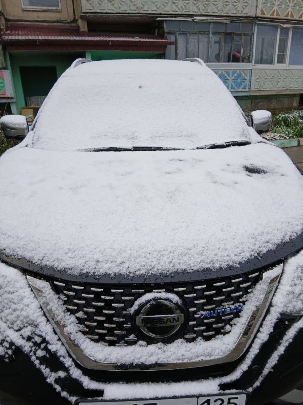 В Пожарском районе минувшей ночью шёл снег, образовался снежный покров высотой до сантиметра (на фотографиях ниже – кадры из Лучегорска). На остальной территории края – дождь. Температура воздуха осталась в основном плюсовая, до +10 °C, на севере лёгкий морозец до -3 °C. Фон максимальных температур остался без существенных изменений.
