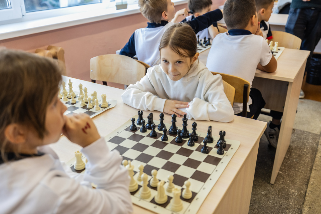 Ученики второго класса школы №40 Владивостока уже умеют ставить сопернику мат в два хода. Навыки игры школьникам помогает развивать педагог по шахматам Денис Черкес. Преподаватель разделяет уроки на тематические блоки, чтобы ученикам было проще постигать принципы игры в шахматы. Учитель моделирует различные ситуации на доске и разбирает их со школьниками, а затем полученные знания ученики пробуют применять в партиях друг с другом. Педагог всегда подскажет, если ход был выполнен неправильно, и объяснит, почему именно.