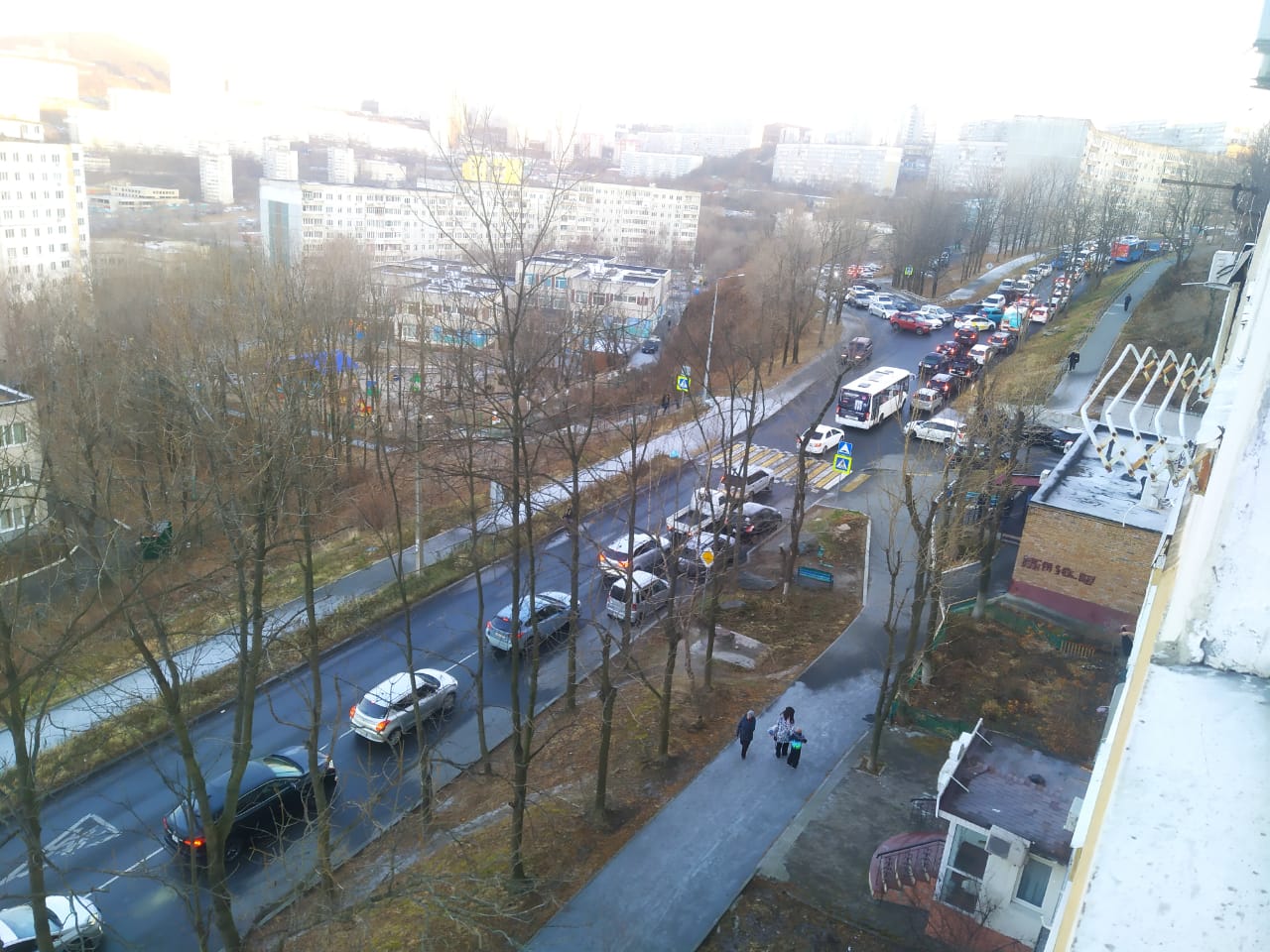 Днём во Владивостоке должно потеплеть до +5...+7 °С. Уже сейчас температура в городе в основном плюсовая, но движение из-за повсеместных ДТП ещё не стабилизировалось. Из-за заторов наблюдаются проблемы и в работе общественного транспорта. Больше всего жалоб на маршруты по направлению Нейбута – Баляева.