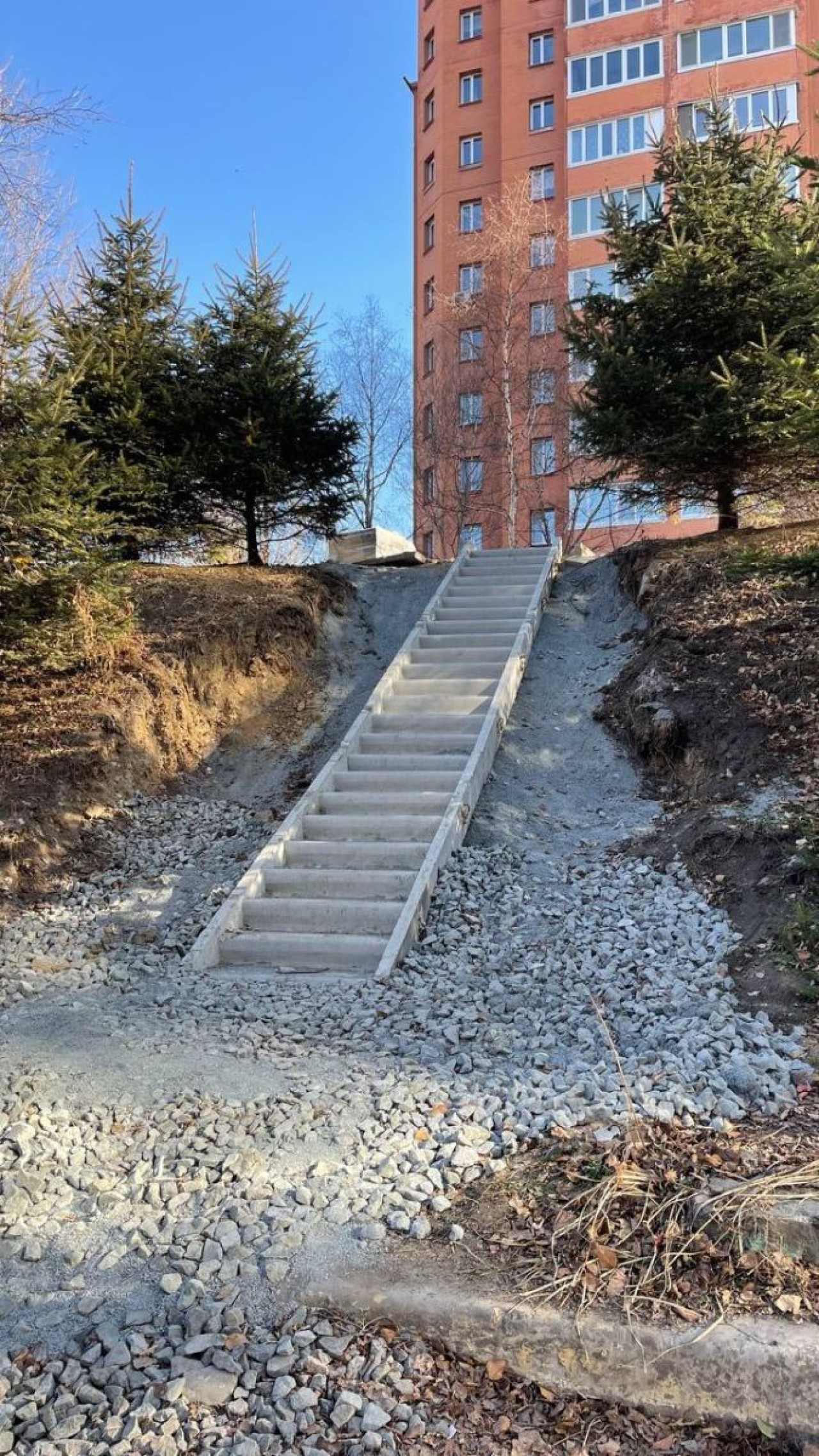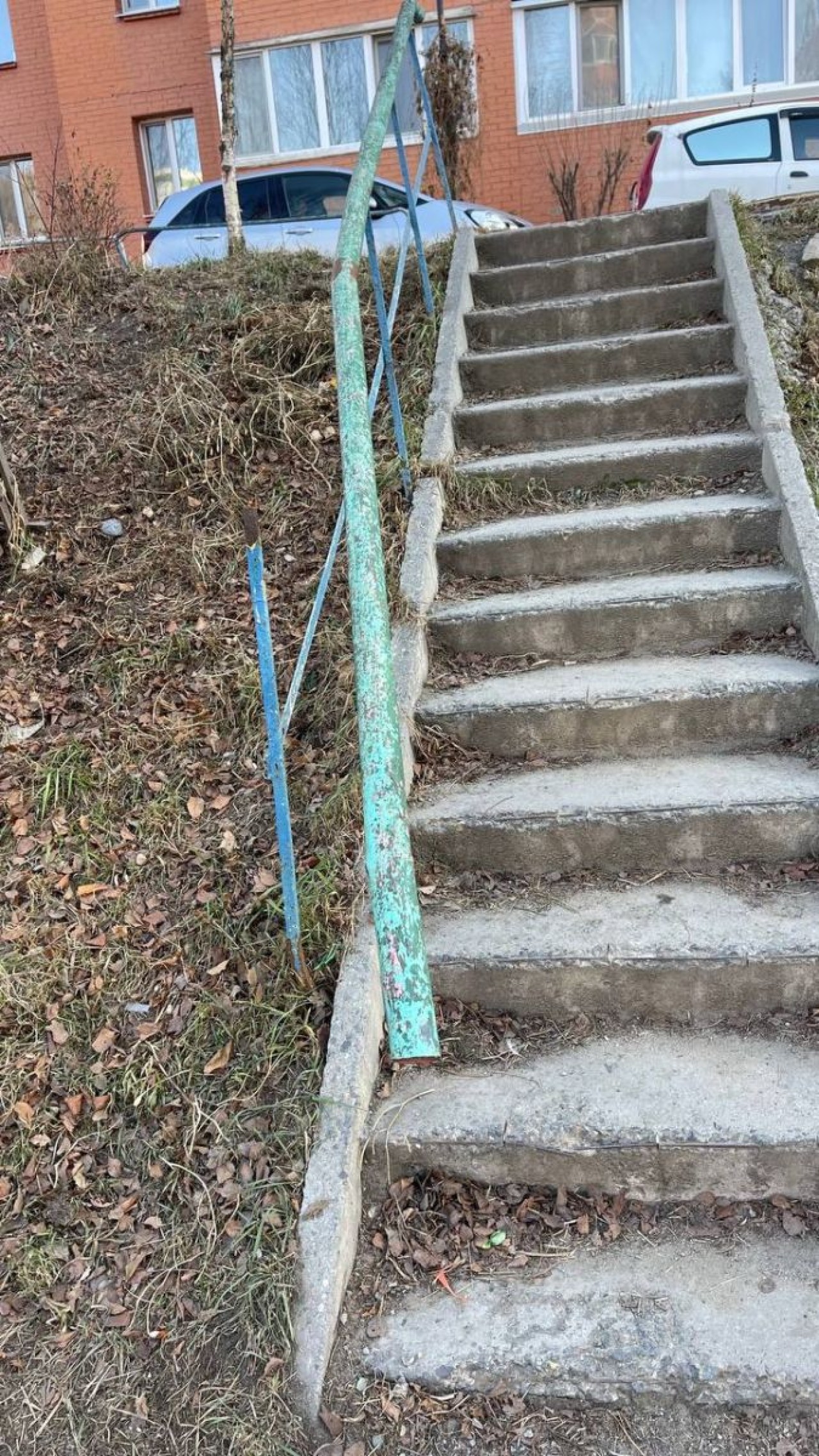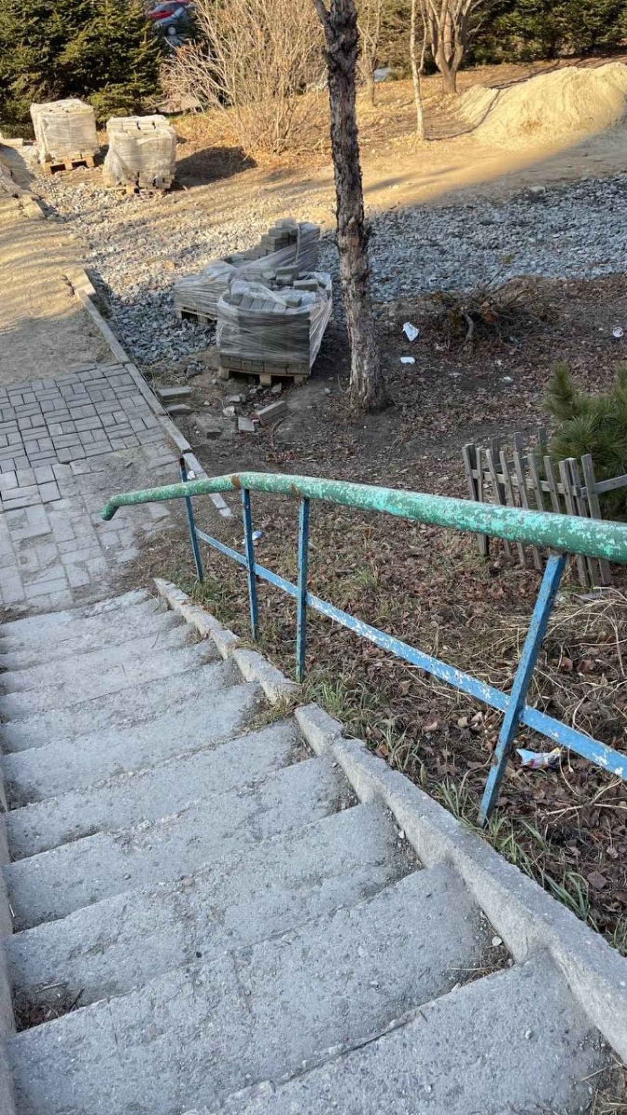 Граждане пишут в telegram-чате главы города, что рабочие выломали деревья и кусты сирени, которые высаживали сами жильцы домов, разрушили скамейки и покрытие, а также лестницы в сквер. Одну разбитую лестницу они заменили новой, небезопасной – без перил, другую восстанавливать не стали. Проход к обеим лестницам затруднён из-за завалов щебёнки и разбитой брусчатки.